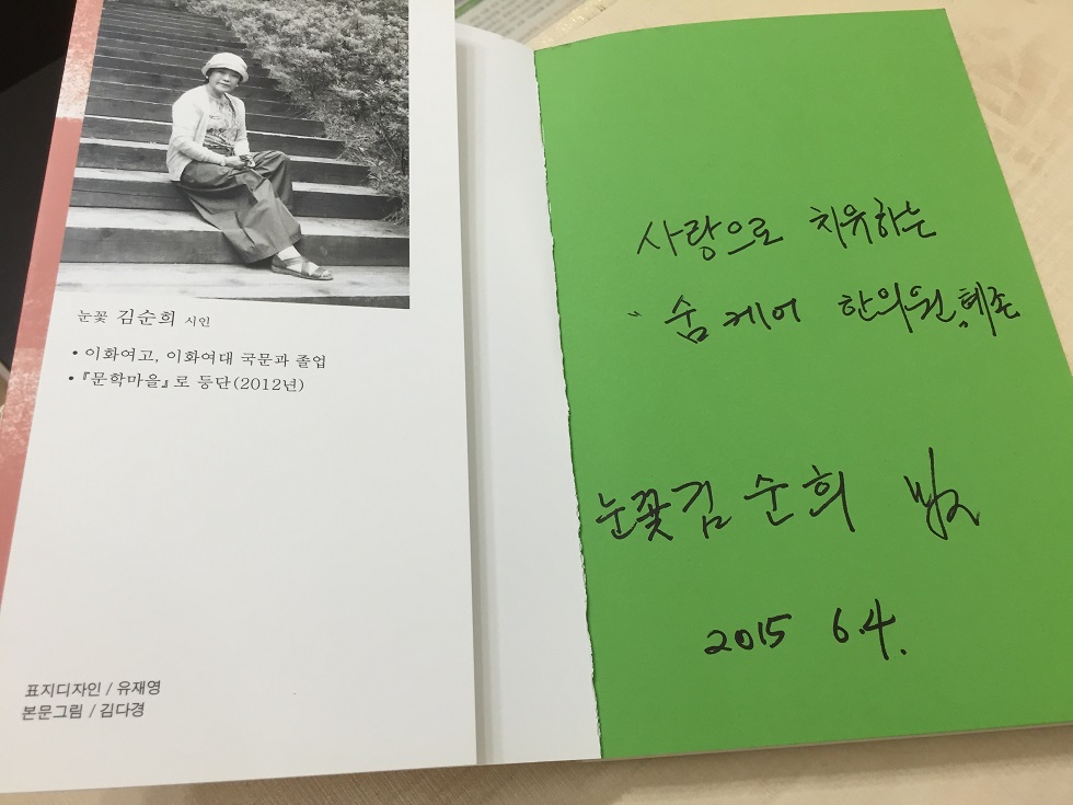 시인 김순희님 선물 페이지 정보 작성자 숨케어한의원 댓글 0건 조회 13,453회 작성일 15-06-04 19:18 목록 본문 시인 김순희님께서 시집을 주셨습니다. 한의원 대기실에 감사히 잘 보관하겠습니다. 이전글송해 선생님 선물 15.06.04 다음글탁기덕님 선물 15.06.04 목록